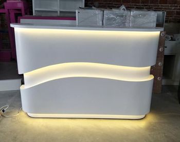 Fabbrica privata di personalizzazione di superficie solida Reception tavolo anteriore con cassetto